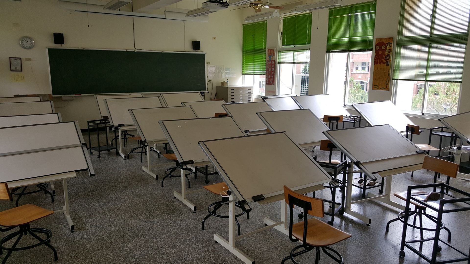 (投影設備1套、製圖桌椅22組) | 手繪製圖、建築識圖實習教室 |