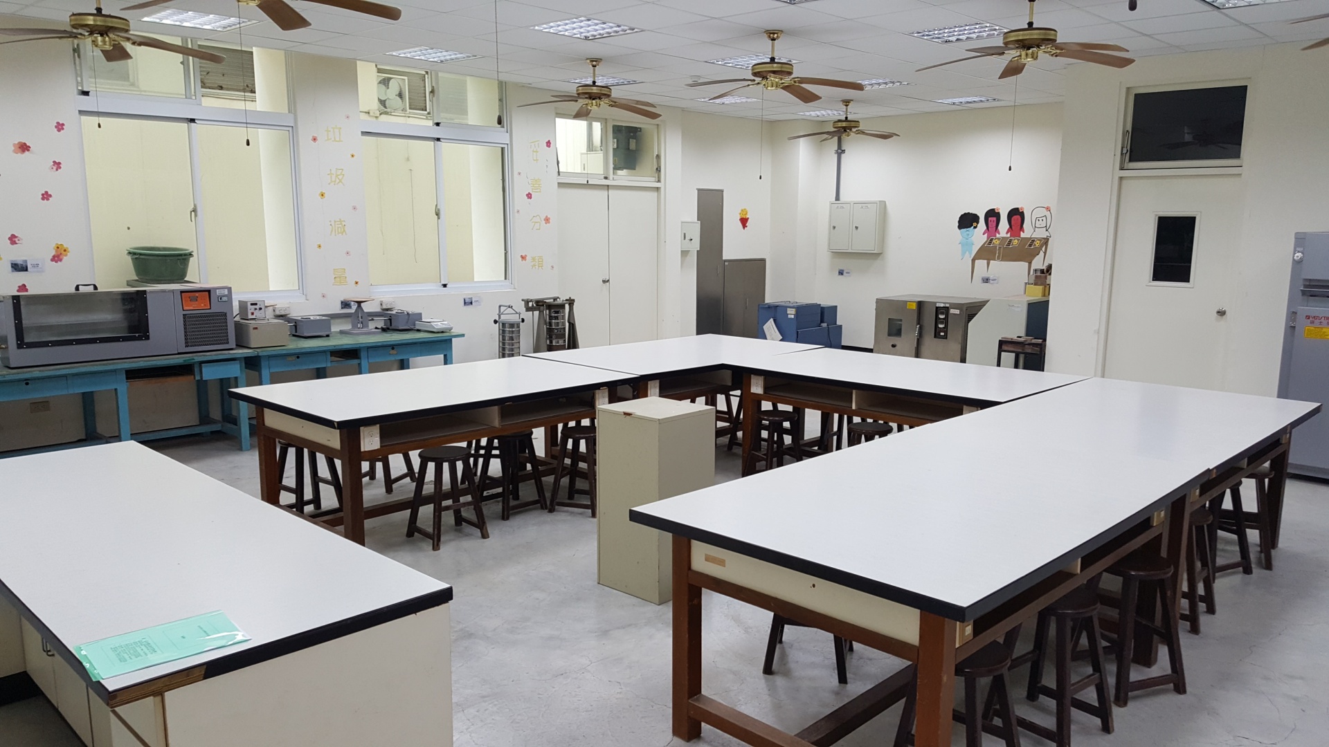 (抗壓機1台、抗拉機1台、烘箱2台、恆溫水槽、膠泥流動檯(含流度模子、測徑器)、篩搖機、氯離子濃度測定器、骨材單位重測定儀、混凝土試驗錘、及其他相關材料實驗用具等) | 工程測量、工程材料、混凝土等實務實習教室 |